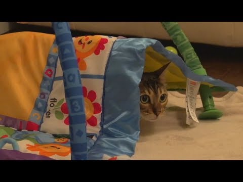 Bengal Cat Rocket Playing Under Baby Blanket Linus Cat Tips
