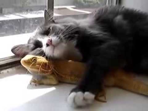 Cat Cuddles Iguana -Funny Cat-Funny Cats Videos